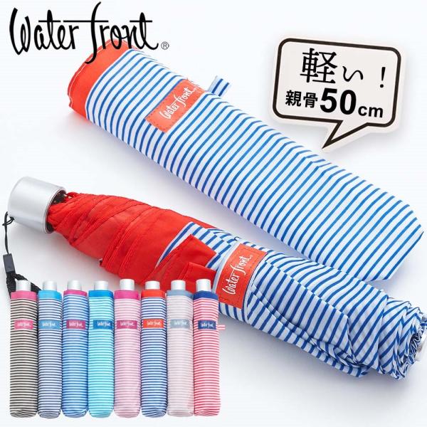 傘 ウォーターフロント 子供用 軽量 ぺん細 ボーダー 折りたたみ傘 レディース キッズ 女性 学生 子供 雨傘 卒業記念品 親骨50cm PHBD-3F50-UH-6T waterfront