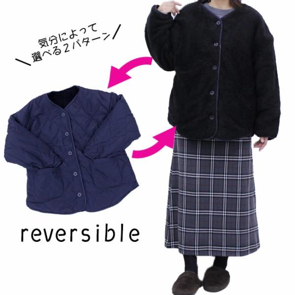裏ボア&撥水加工 軽量リバーシブルジャケット ボア 秋 冬 保温 極暖 シンプル アウター 2WAY ナチュラル アウター