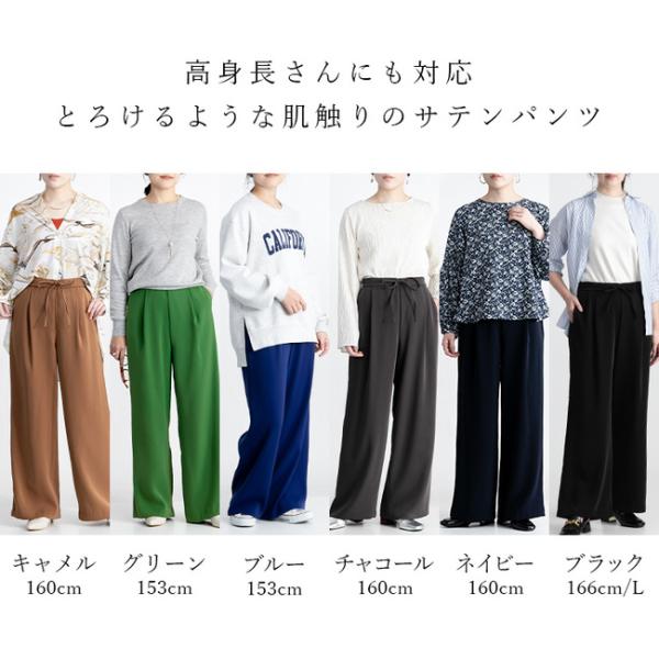 【きれいめ】落ち感が上品なマットサテンワイドパンツ