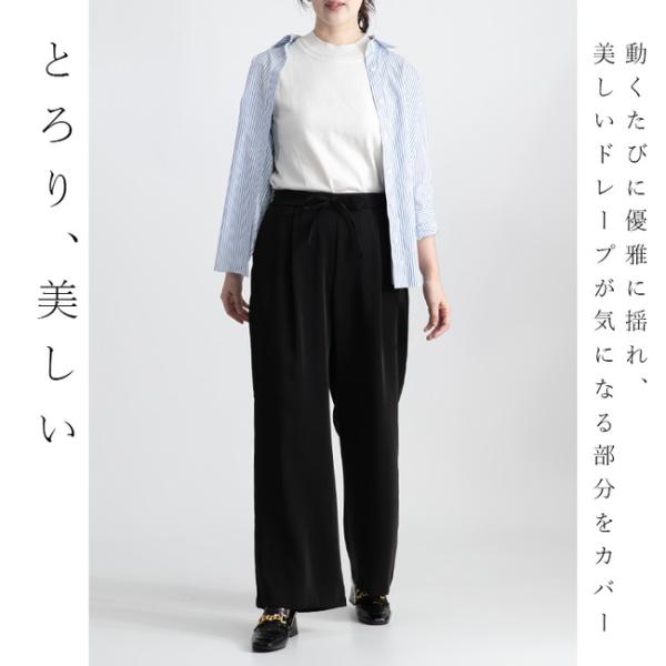 ワイドパンツ レディース きれいめ てろん ボトムス 落ち感 ウエストゴム ストレッチ リラックス ルーズ イージー シンプル パンツ 春夏秋 ゆったり ストレート