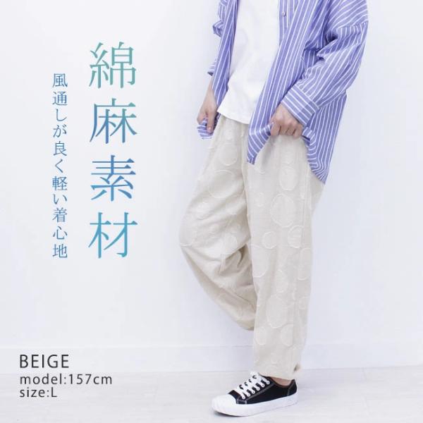 リラパン 綿麻 夏 日本製 サルエルパンツ リネン もんぺ ドット柄 部屋着 ルームウエア 涼しい 快適 大きいサイズ 春 メール便 速乾 ゆったり JAPAN