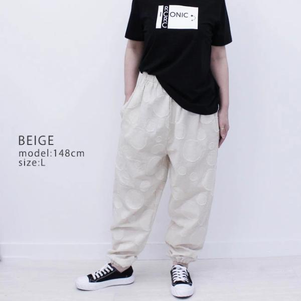綿麻素材で通気性バツグン♪ドット柄リラックスパンツ