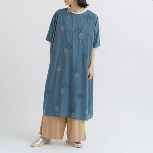 ワンピース トップス 涼しい 春夏秋 チュニック 刺〓入り ナチュラル 綿100