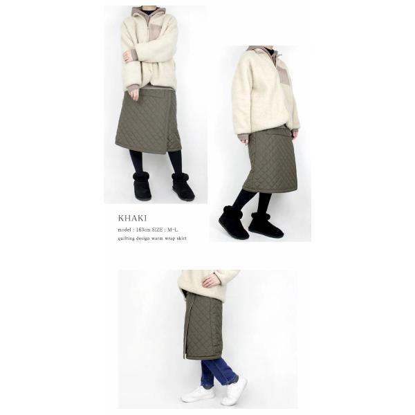 しっかり防寒!ロング丈のキルティング巻きスカート。