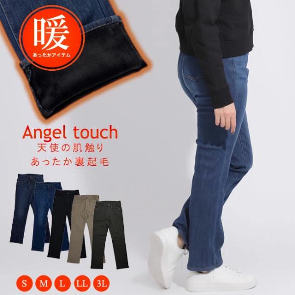 デニム レディース 裏起毛 ストレッチ 極暖 秋冬 すっきりシルエット パンツ ストレート ボトムス ストレートデニム ウエストゴム ストレッチ