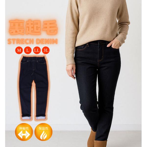 デニム レディース 秋冬 あったか ボトムス 裏起毛 パンツ 大きいサイズ ストレッチ 美脚 カジュアル ゆったり 楽ちん 黒スキニーパンツ 3L 防寒