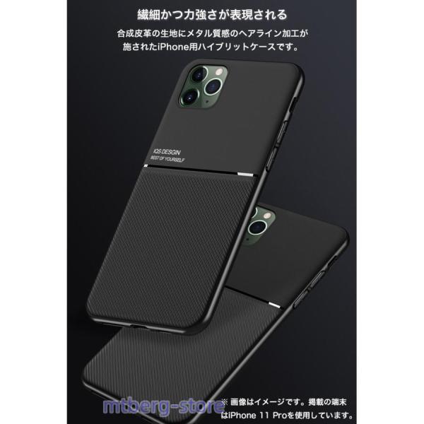合成皮革の生地にメタル質感のヘアライン加工が施されたiPhone用ハイブリットケースです。