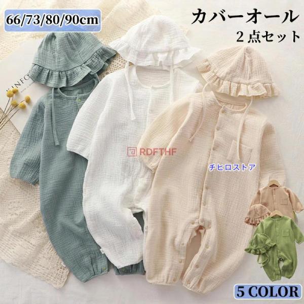 カバーオール ロンパース 女の子 男の子 ロンパース 2点セット 純綿 コットン 子供服 綿 帽子付き ベビー服 前開き 赤ちゃん 長袖 新生児服 ベビー 春物 秋物