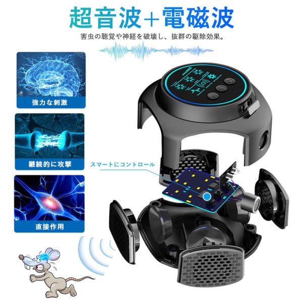 ネズミ 超音波 駆除 害虫 効果抜群 撃退 音 電磁波 撃退器 害虫対策 ネズミ 駆除 スピーカー 360°全方位 簡単設置 静音 グッズ 安全 飲食店 業務 オフィス 爆買