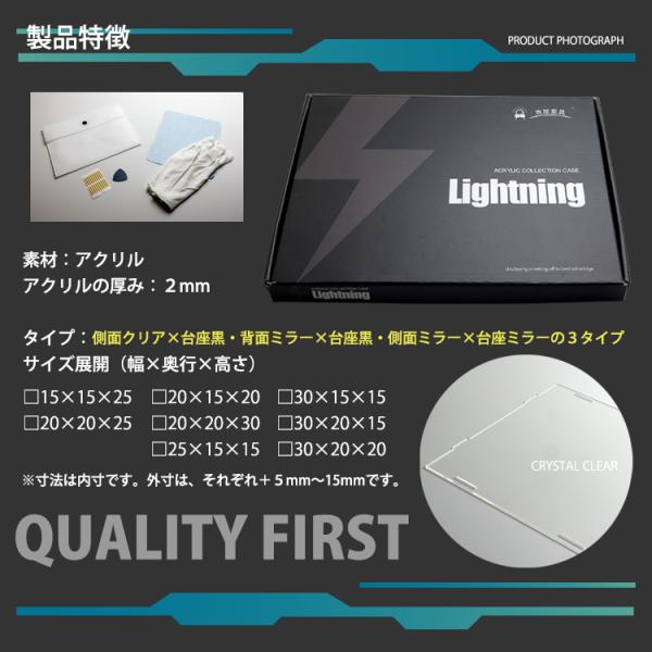 アクリルケース Lightning 幅30cm 奥行20cm 高さ15cm 側面クリア×台座黒 コレクションケース アクリルボックス フィギュアケース