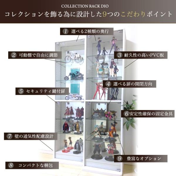 コレクションラック DIO ディオ 幅46cm 本体 ミドル ハイタイプ 鍵付 奥行28cmタイプ 中型 追加ガラス棚1枚付き
