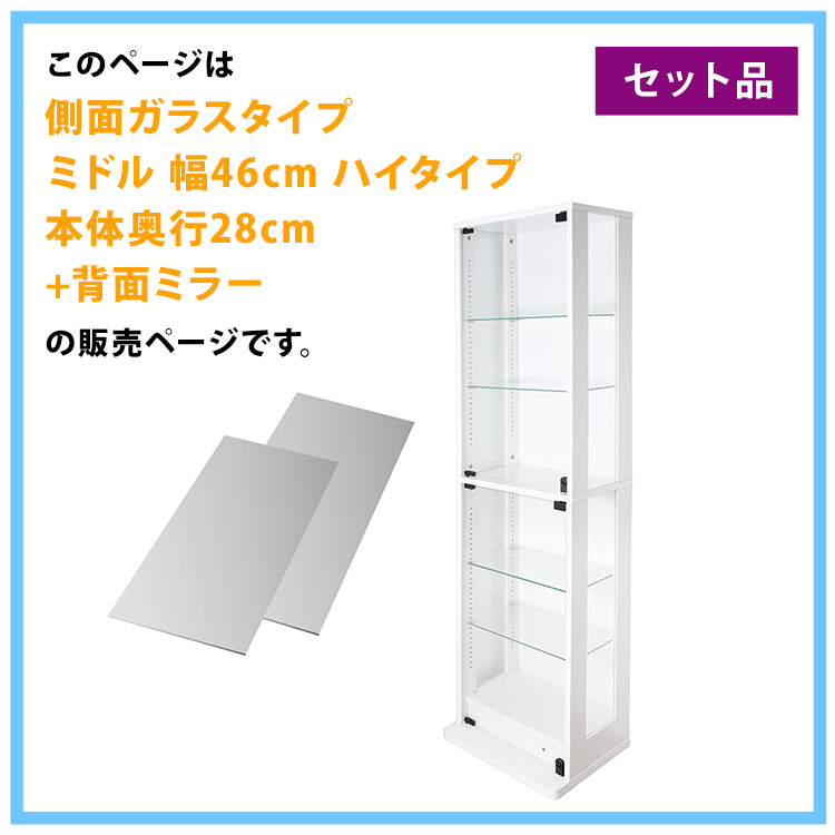 コレクションラック DIO 側面ガラスタイプ ディオ 本体 幅46cm 本体ミドル ハイタイプ 鍵付 奥行28cmタイプ 中型 背面ミラー付き