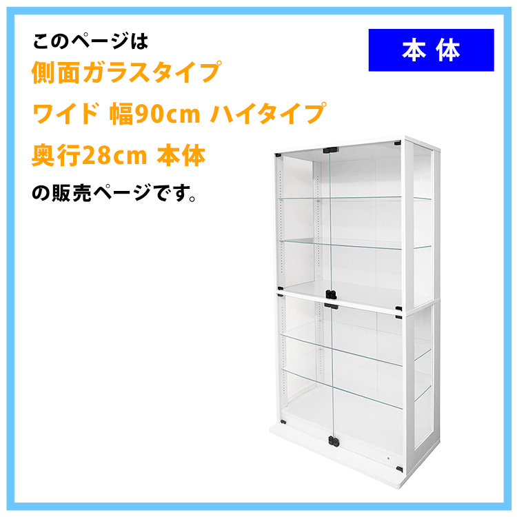コレクションラック DIO 側面ガラスタイプ ディオ 本体 幅90cm 本体 ワイド ハイタイプ 鍵付 奥行28cm 中型