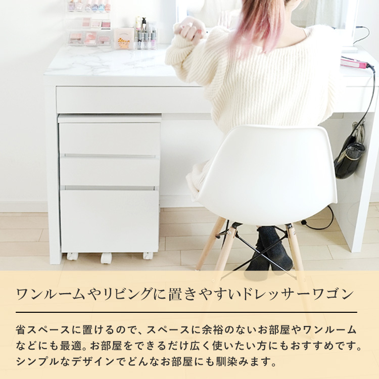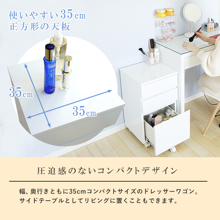 ドレッサーワゴン コスメワゴン コンパクト 幅35cm キャスター付き 引き出し3杯 鏡面仕上げ 収納 シンプル Alice アリス