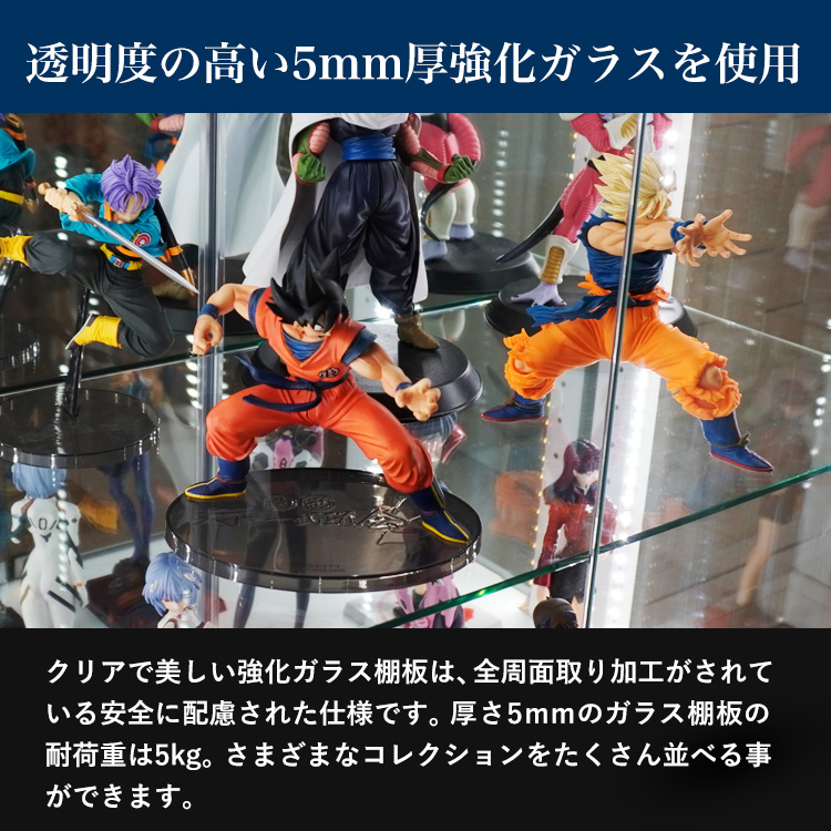 ガラスコレクションケース ジョニー JONY 本体 ワイド 幅80cm ミドルタイプ 背面ミラー 背面ガラス 選択可能 LED付き セット品