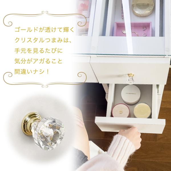 ホワイトカラー ガラス 天板ドレッサーテーブル クリスタル取っ手 透明感