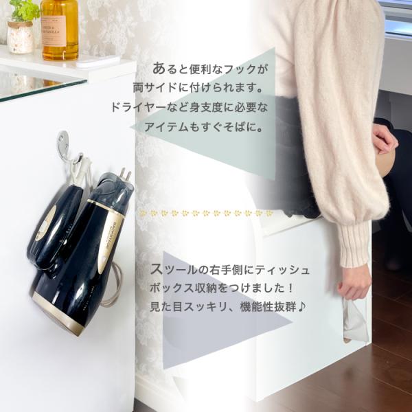 スツールにはティッシュボックススペースがあるので、収納・取り出しがしやすく便利!多機能でおしゃれなドレッサーです。