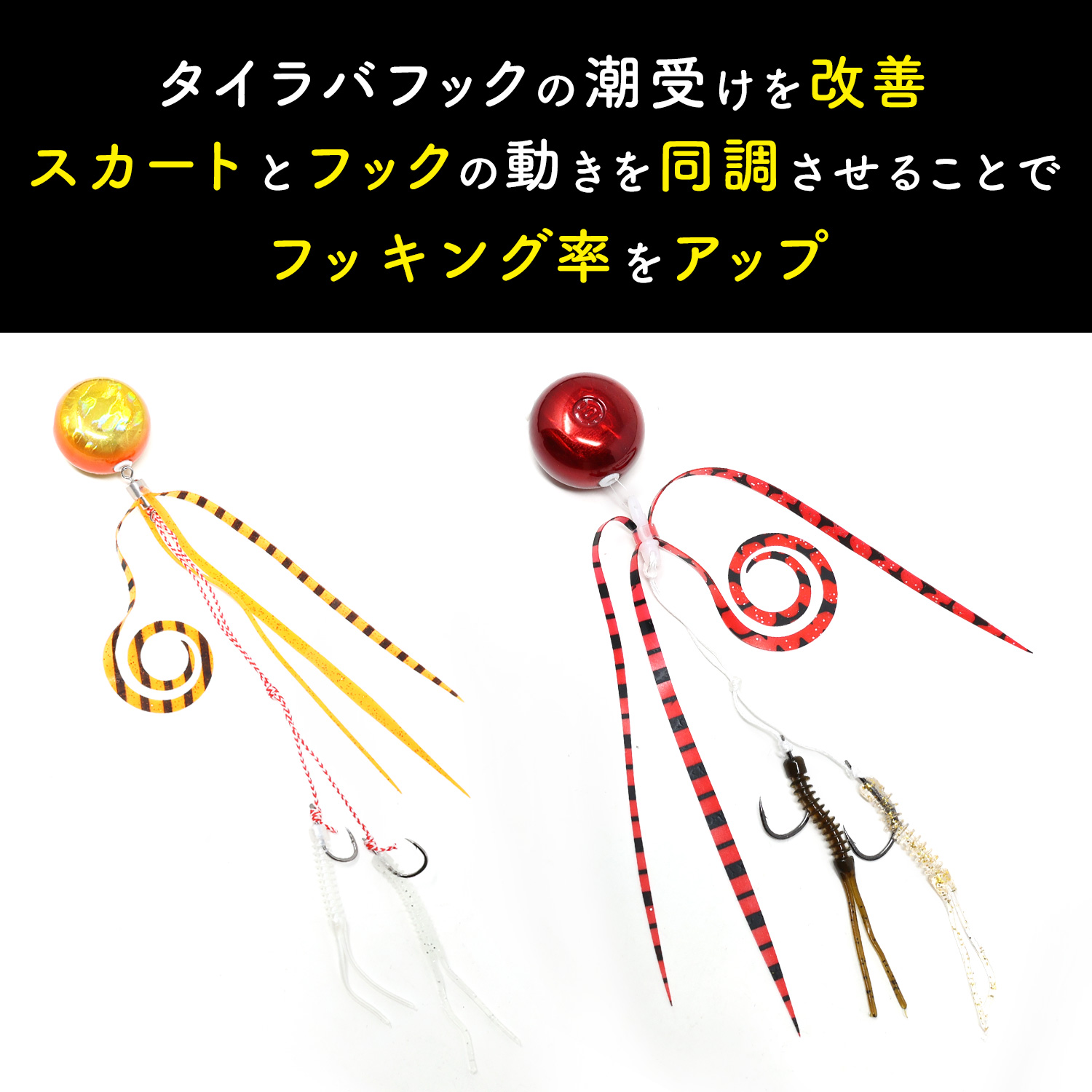 タイラバフックの潮受けを改善し、スカートとフックの位置を同調。フッキング率をアップ。