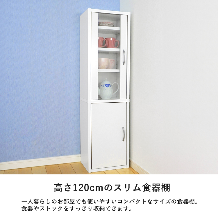 食器棚 幅60cm スリム ガラス扉 引き戸 コンパクト 薄型 高さ41cm 一人暮らし キッチン 収納隙間 収納 すきま シンプル 可動棚 組立品