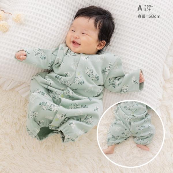 長袖 ツーウェイ ロンパース カバーオール ベビー服 子供服 キッズ 肌着 新生児 女の子 綿100% 総柄 秋 [M便 1/1]