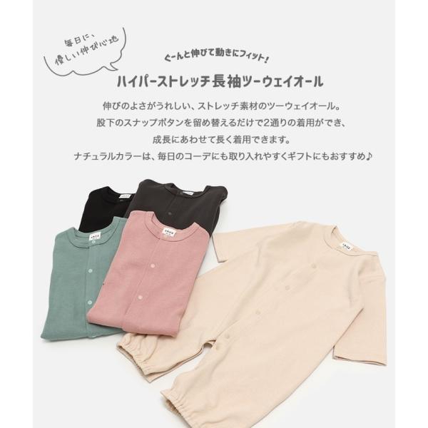 ネコポス送料無料 ツーウェイ ロンパース カバーオール ベビー服 子供服 長袖 新生児 ベビー服 赤ちゃん 男の子 女の子 ストレッチ 無地 秋 [M便 1/1]