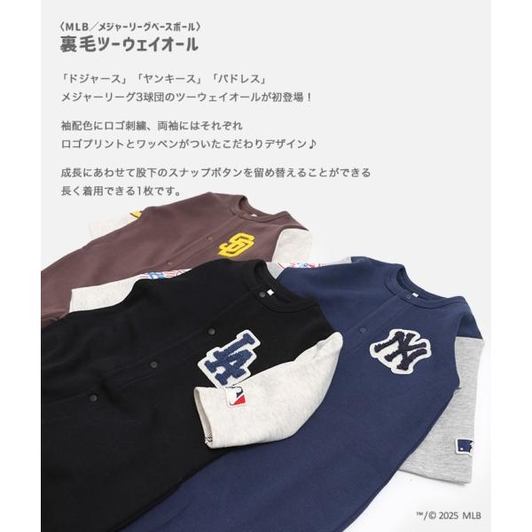 MLB ベビー 新生児 ツーウェイオール ロンパース カバーオール 長袖 メジャーリーグ 男の子 裏毛 ドジャース ヤンキース パドレス 秋