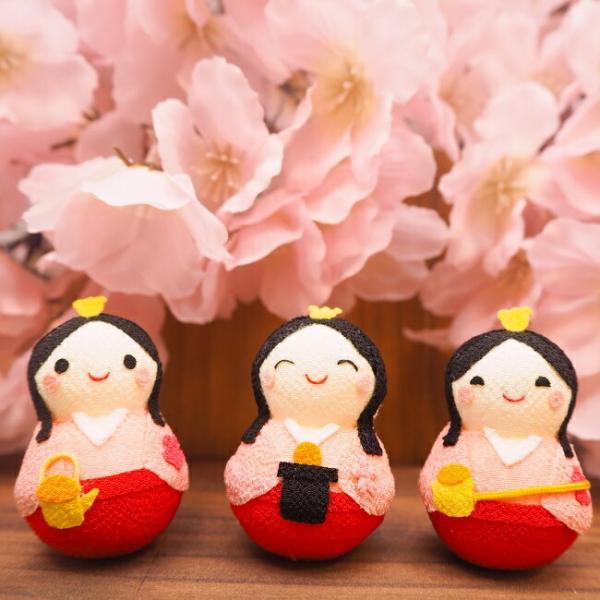 おきあがりこぼし 雛人形 コンパクト ひなまつり 三人官女 起き上がり小法師シリーズ 桃の節句 雛祭り ミニチュア 手のひらサイズ ちりめん細工館