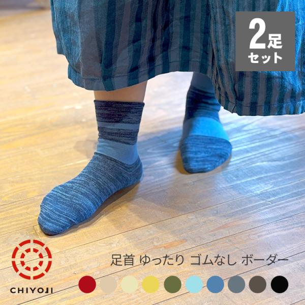 【2足組◎22-24cm】足首ゆったり ゴムなしボーダーソックス【ネコポス送料無料】