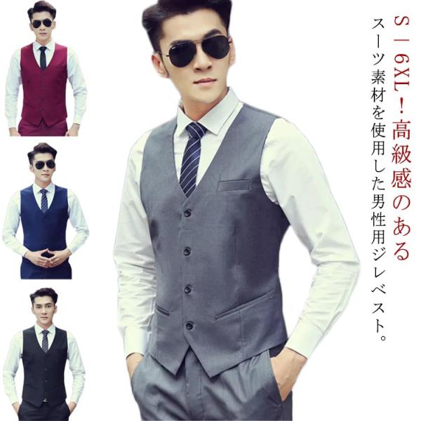 ビジネス トップス 前開き ベスト ノースリーブ スーツベスト チョッキ 紳士服 制服 メンズ ジレ ジャケット 大きいサイズ 事務服 大きいサイズ