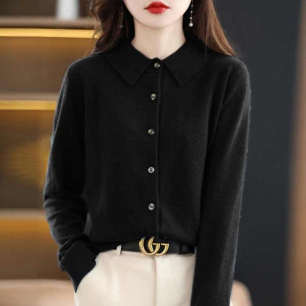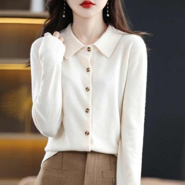 レディース 襟付き 無地 ニットカーディガン ショート丈 前開き カーディガン カットソー ポロシャツ ニットセーター 長袖 全9色!ニットポロシャツ
