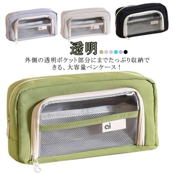 外側 ペンケース 韓国 透明ポケット 高校生 大容量 レディース 中学生 女子 オシャレ 可愛い ふで箱 シンプル 文具 女性 おしゃれ 自立型 かわ