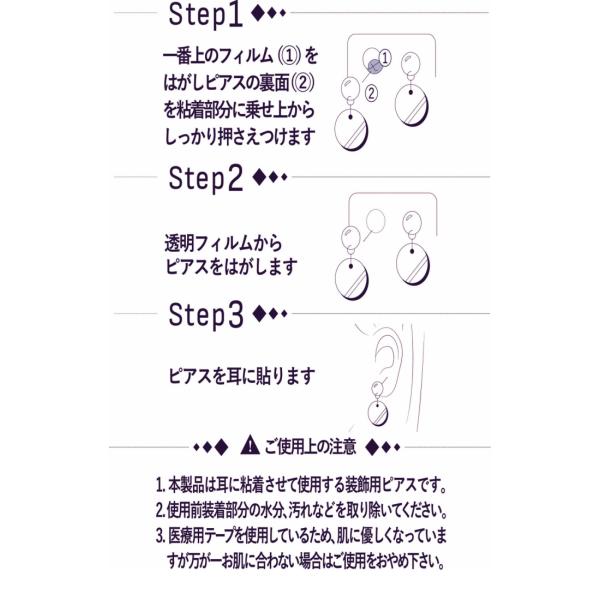 1.本製品は耳に粘着させて使用する装飾用ピアスです。