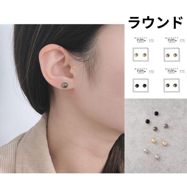 貼るだけピアスPiPPi ユニセックス 耳つぼ アレンジ メタリック ラウンド スター スクエア レディース オールシーズン ショート 金属アレルギー対応 キッズ