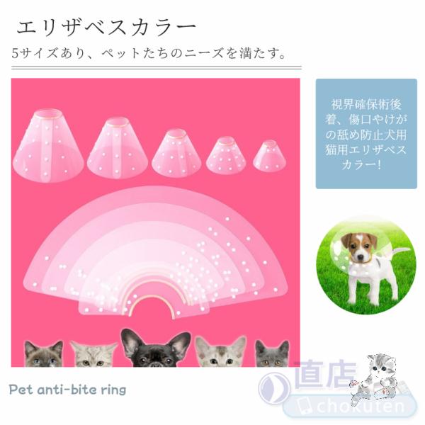 ペット用 ネコ猫用 犬用 ソフトエリザベスカラー/簡単装着/首まり柔らかい素材/犬用介護用品/手術/怪我/術後の傷口保護/視界確保術後着舐めない 5サイズ選択可