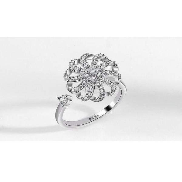 女性の不安リングフィジェットスピナーリングキュービックジルコニアムーンスターフラワースピニング回転可能な心配リングストレス解消調整可能