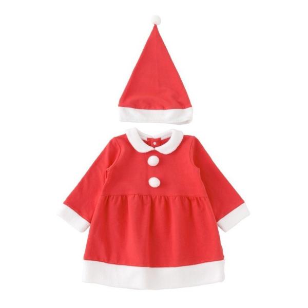 ベビー服 赤ちゃん 服 ベビー ワンピース 女の子 70 80 90 クリスマス コスプレ サンタさんワンピース帽子セット