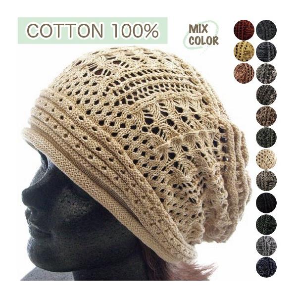 ニット帽 MIXカラー サマーニット コットン デザイン編み DIGZHAT メンズ レディース 春夏 室内用にも 帽子 ニットキャップ 送料無料