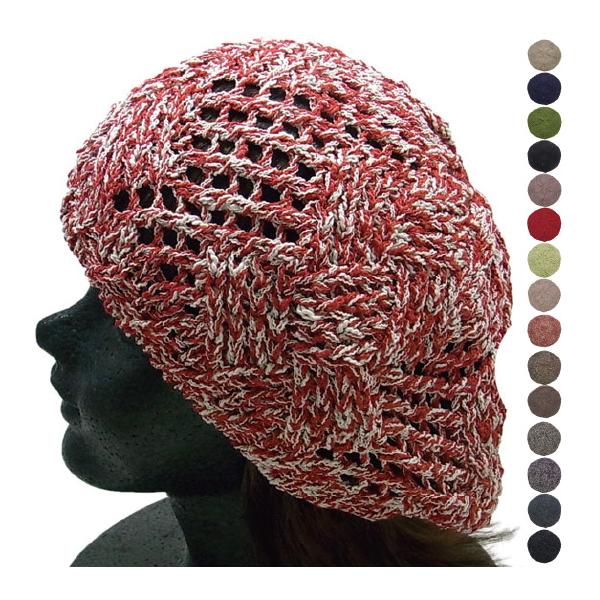 ベレー帽 さらっと肌触りのいいコットンニット DIGZHAT メッシュデザイン編み ニット帽 タム 綿100%