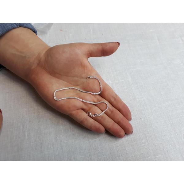 シルバーのスクリューチェーンが動くたびにキラキラ光ります