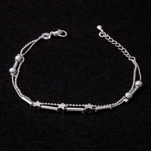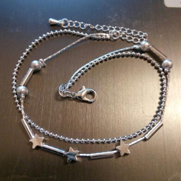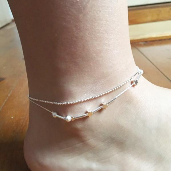 アンクレット シルバー アクセサリー 星 スター ビーズ 2連 レディース チェーン レイヤー アクセ 足 足首 レッグ ジュエリー