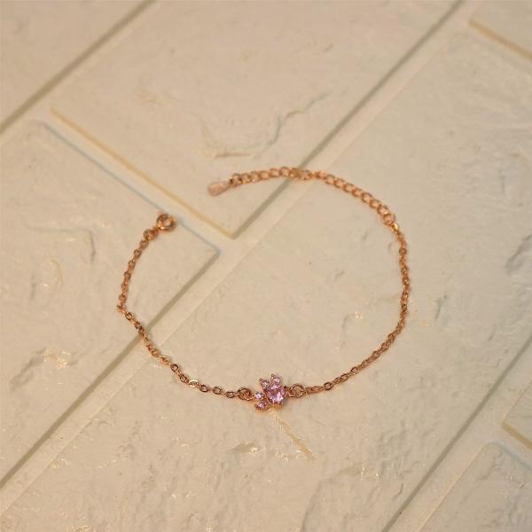 シルバー 925 ブレスレット レディース 女性 華奢 上品 エレガント 結婚式 パーティ シルバーアクセサリー アクセサリー ブレス アクセ モテコーデ ポイント消費 銀 Silver プレゼント ギフト 動物 アニマル 肉球 かわいい 癒し ピンク クリスタル ビジュー ストーン 猫 犬 にゃんこ わんこ