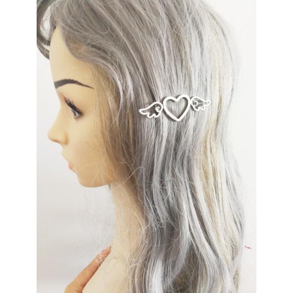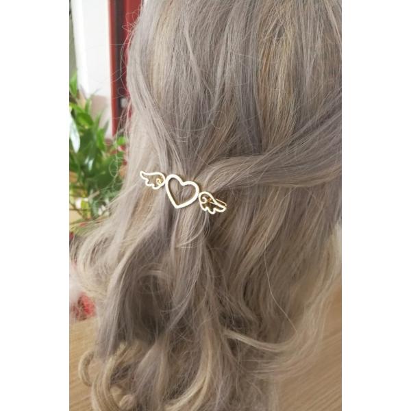 ハートに天使の羽根が付いた 可愛いヘアピン
