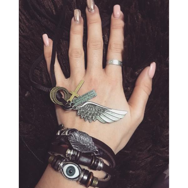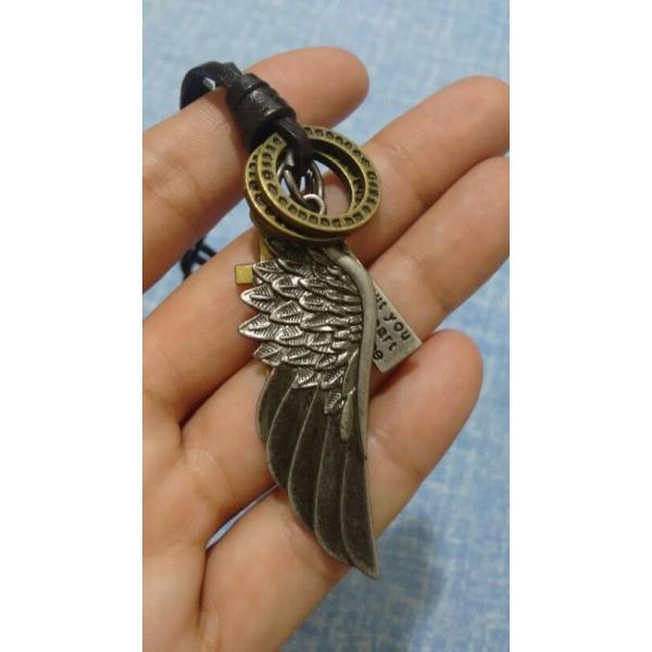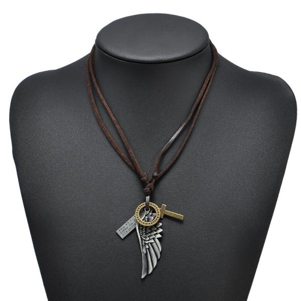 ネックレス メンズ ビンテージ ヴィンテージ フェザー クロス 羽 レザー ブロンズ シルバー リング プレート 英字 タグ サークル 十字架 クロス