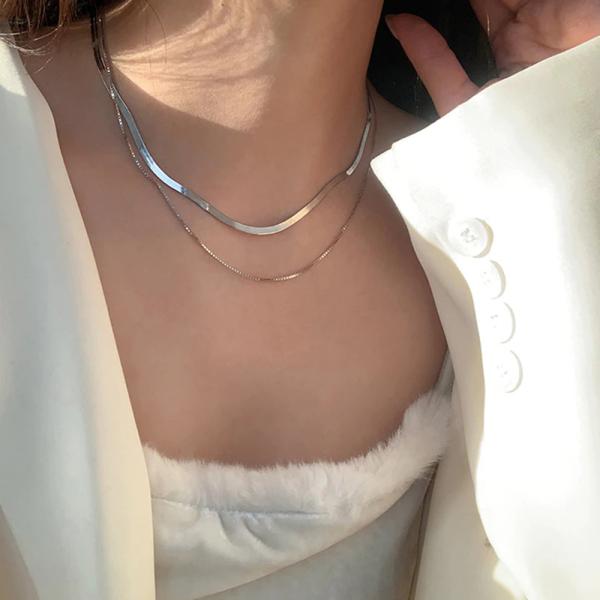 ネックレス スネークチェーン フラット スネーク シルバー 2連 レディース アクセサリー アクセ レディース ギフト