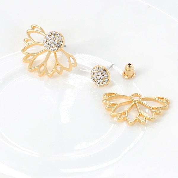 結婚式 二次会 パーティ ゴージャス 上品 インスタ映え アジアン 和 ロータス 蓮 ラインストーン クリスタル 入学式 卒業式 フラワー 花 華 ジャケットピアス パヴェ シールドピアス 後ろキャッチ ロータスパベ パヴェピアス
