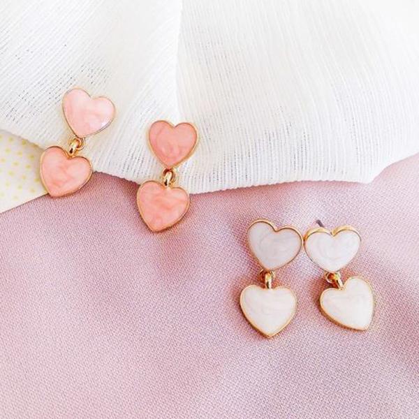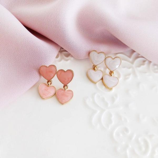 ピアス ダブルハート ハート ピンク ホワイト 両耳用 アクセサリー レディース ジュエリー かわいい 桜色