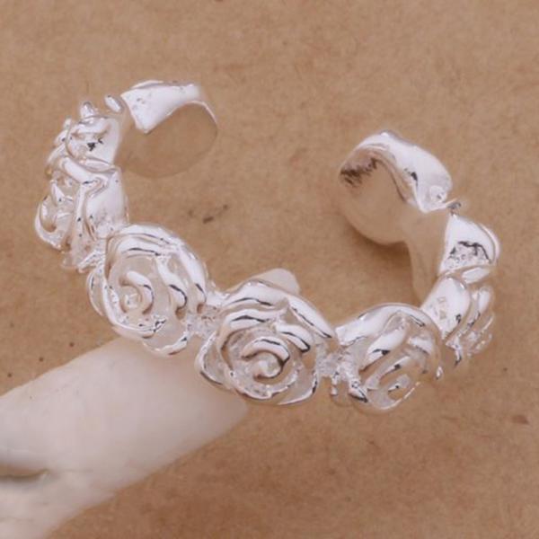 薔薇の花が並んだ可愛いシルバーリング
