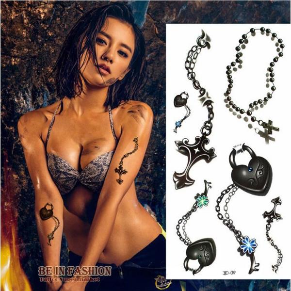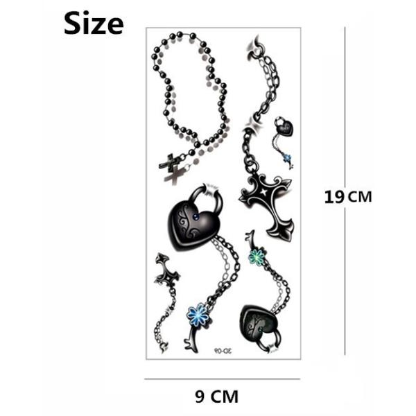 タトゥーシール 本物 3D 鎖 チェーン ハート 南京錠 クロス 十字架 鍵 タトゥー シール ボディシール TATOO 入れ墨 刺青 転写 防水 オマケ付