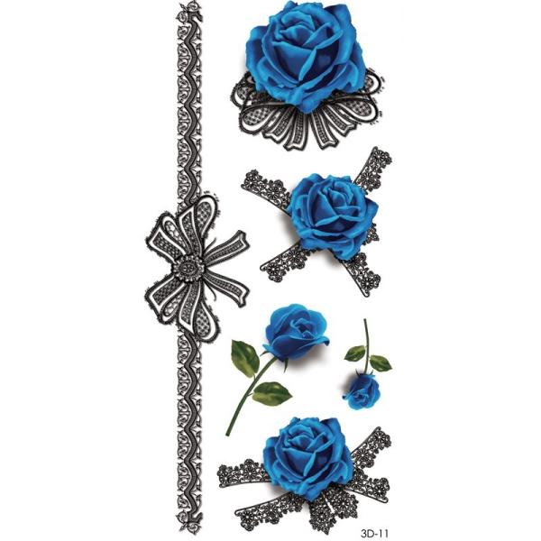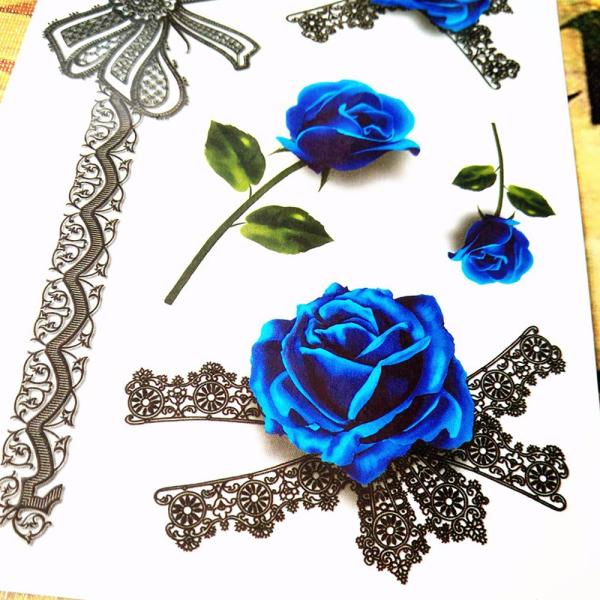 タトゥーシール 本物 3D リアル 薔薇 ローズ ブルーローズ 青い ばら セクシー レディース タトゥー シール ボディシール TATOO 入れ墨 刺青 転写 防水 オマケ付