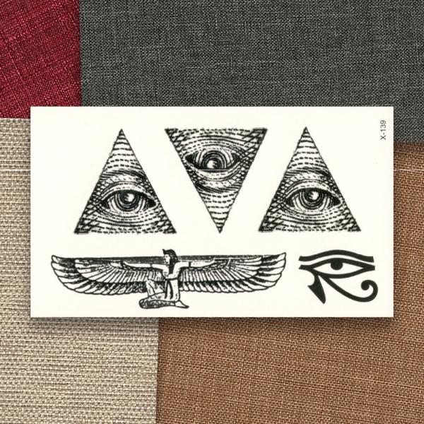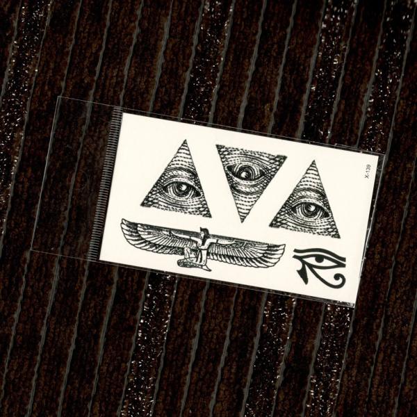 タトゥーシール 本物 隠す エジプト 目 三角形 フリーメイソン 神の目 プロビデンスの目 入れ墨 刺青 モノクロ 白黒 ボディアート シール リアル オマケ付